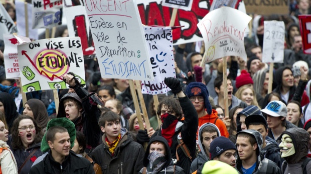 It’s interesting to observe the responses to this in the media and online. Generally, there is not too much sympathy with the students. Reasons tend to be: the students enjoy some of the lowest fees in North America; they are privleged anyway; they are obstructing the hardworking students who want to write exams and get on with their degrees; the state already spends a lot of money subsidizing higher education; university professors in Canada earn such high wages that universities need to charge high fees to pay them.
